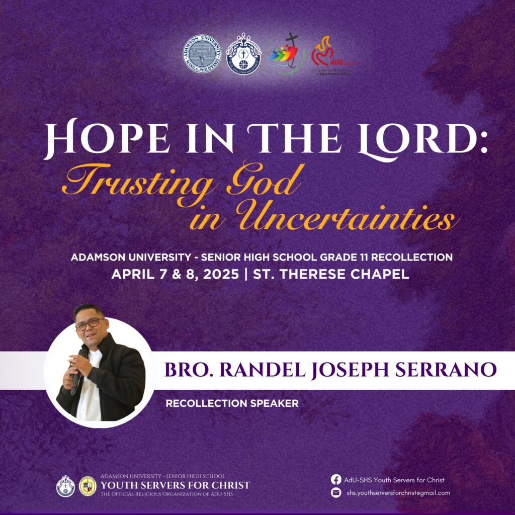Last January 27-28, 2025, the Senior High School Campus Ministry Office held a meaningful Grade 12 recollection with the theme Vincentians as Pilgrims of Hope: Journeying in the Spirit of Jesus Christ.